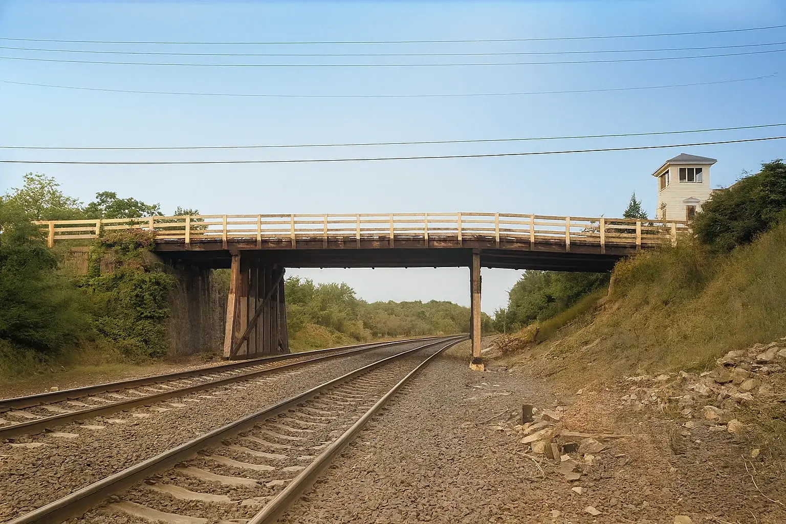 25. Bridge over the tracks on the way out of the village by the Church…