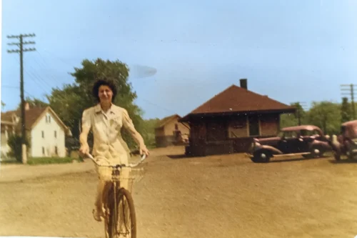 15. On her bike ready to open her store…